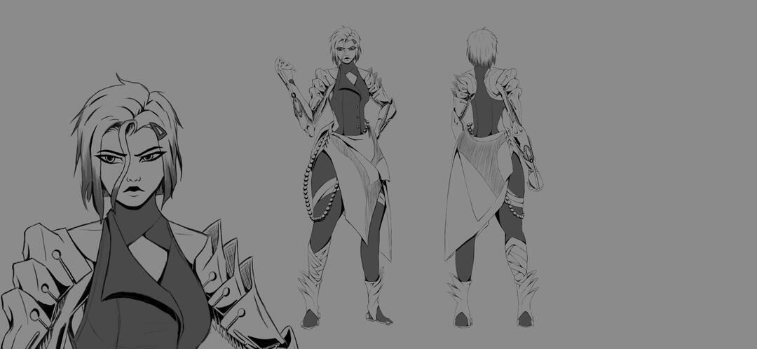 Example. Anime, Colorless, Detailed, Character concept, front and back.